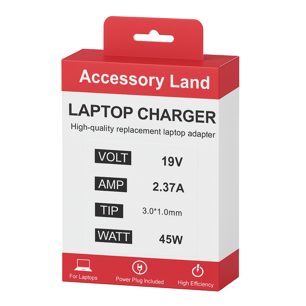 *Guidance only. Always match your original adapter’s voltage (19V), current (2.37A) and connector (3.0×1.0mm). If your laptop needs higher wattage, choose an adapter with equal or higher W rating.