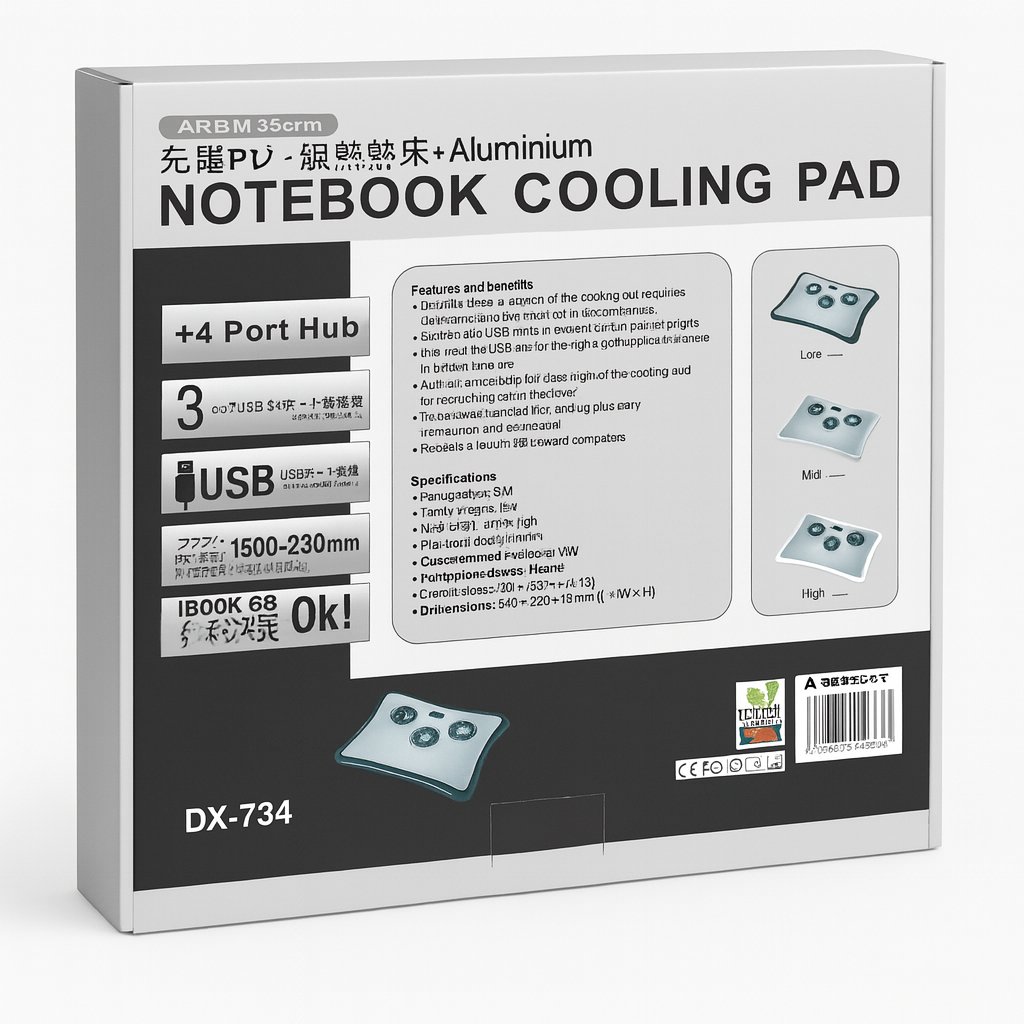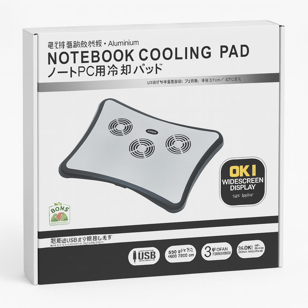 Aluminium Notebook Cooling Pad - 3 Fans, 4-Port USB Hub